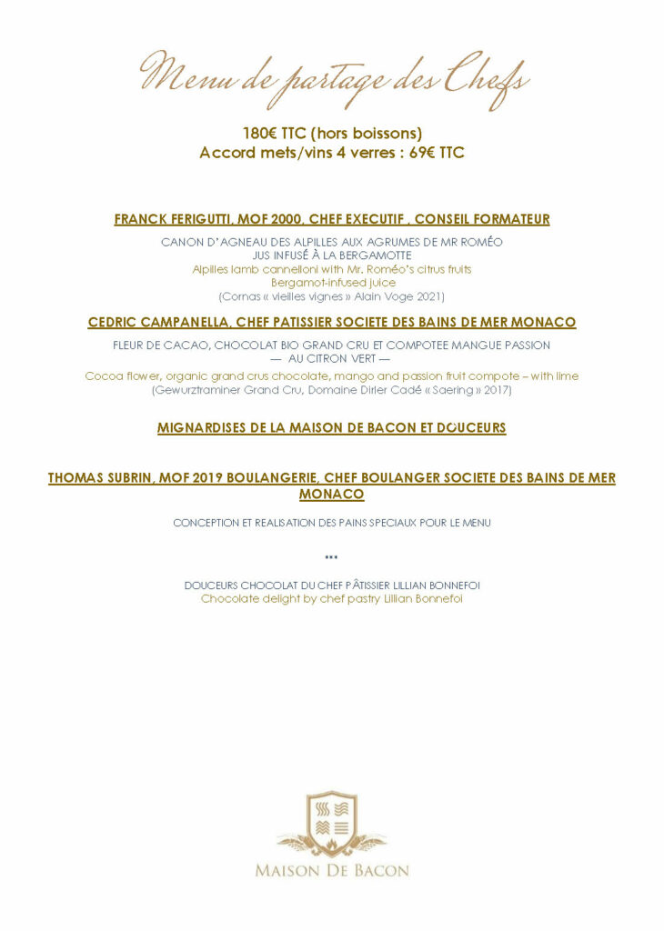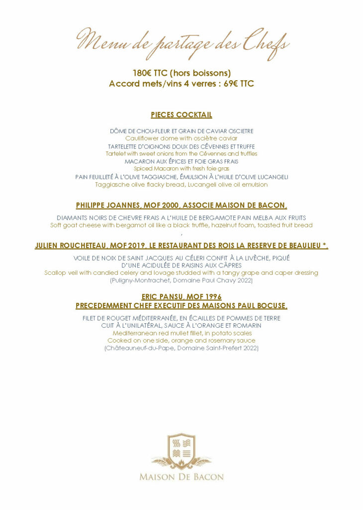 Pour la dernière édition de l’année 2025, un dîner spécial MEILLEUR OUVRIER DE France. 5 MEILLEURS OUVRIERS DE France réunis autour de Nicolas DAVOUZE, Bocuse d’Or France, Chef exécutif de la MAISON DE BACON