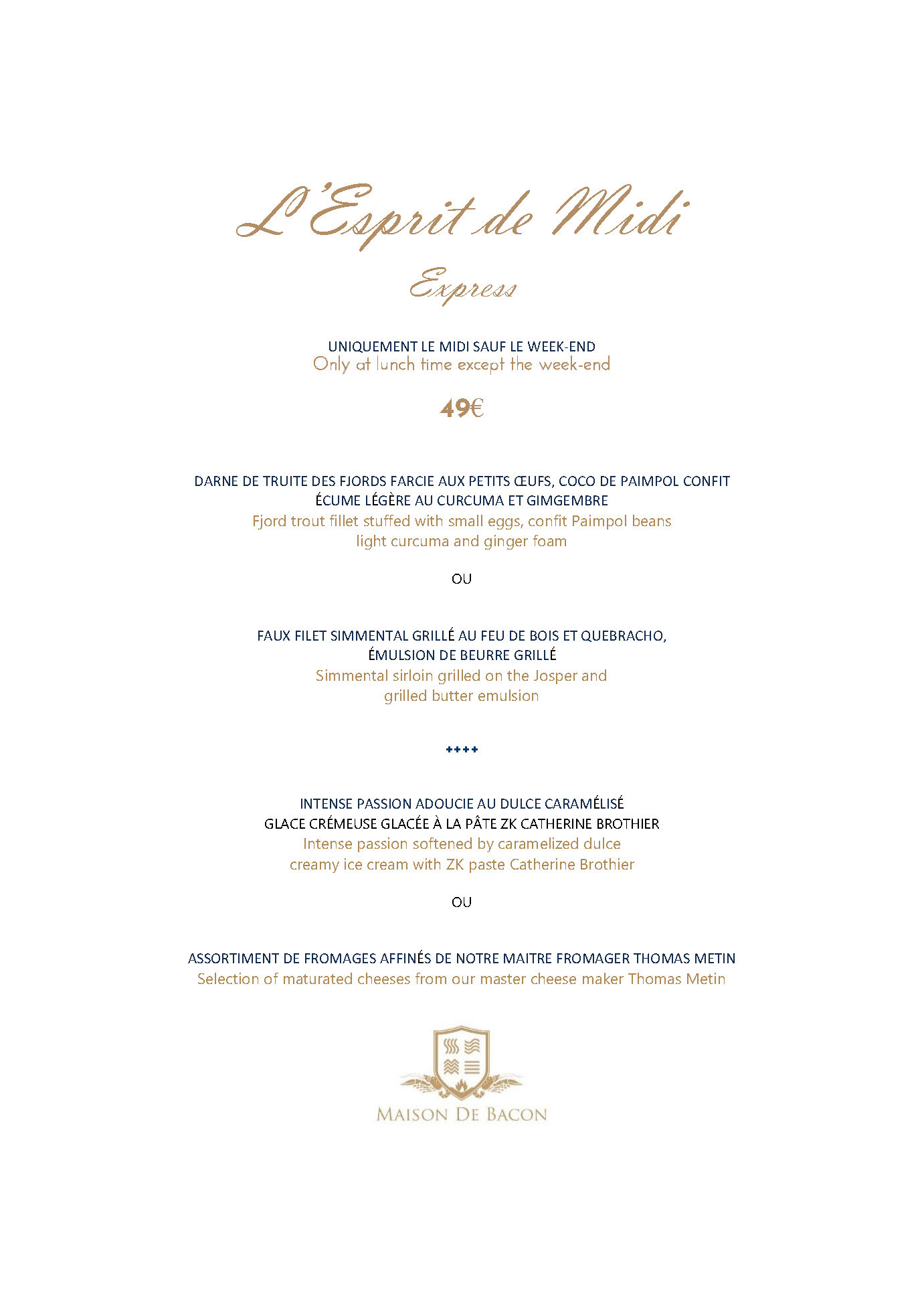 OUVERT DU MERCREDI AU DIMANCHE INCLUS