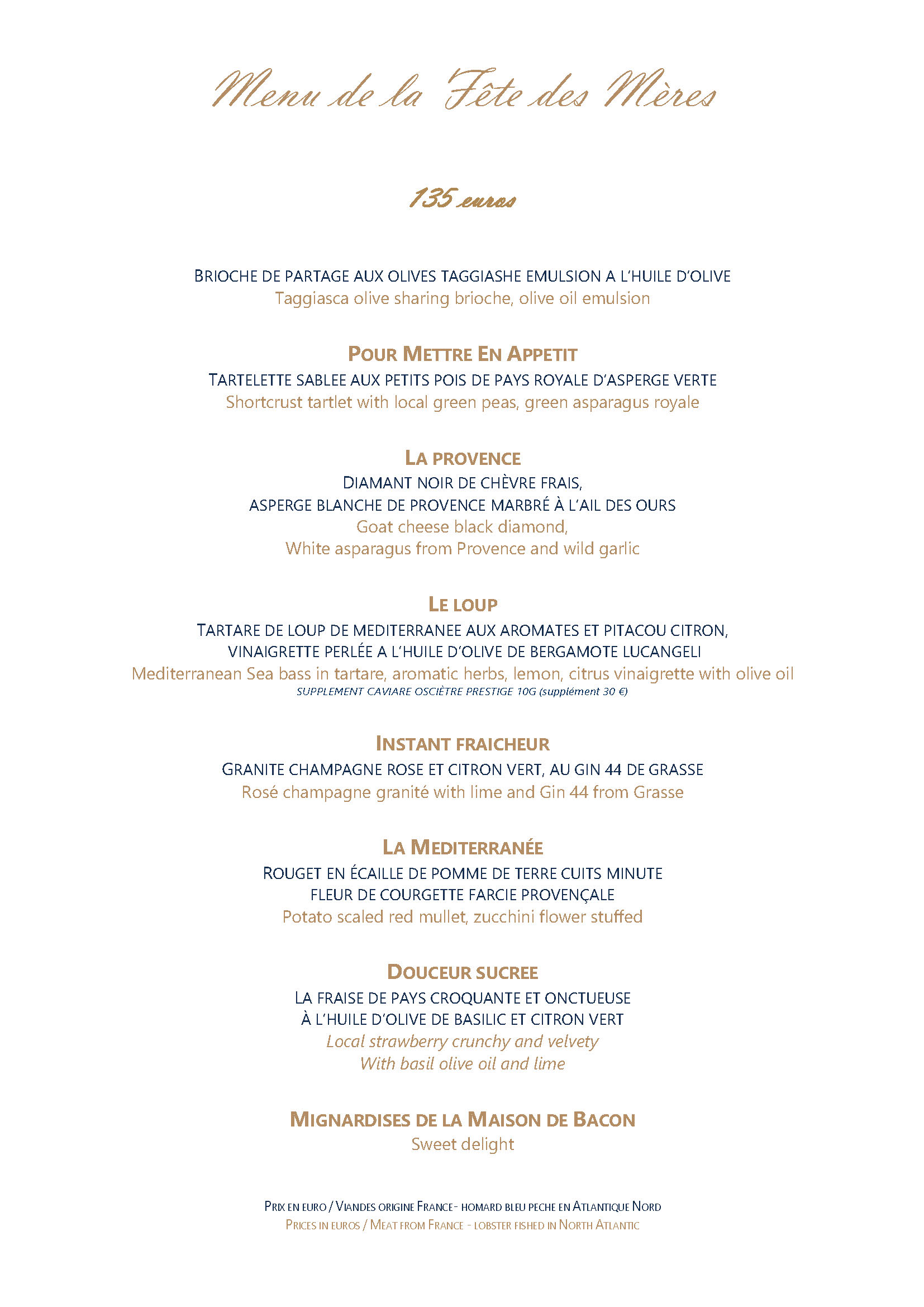 Découvrez notre menu spécial Fête des Mères et laissez-vous porter par l’art de vivre de la Maison de Bacon.